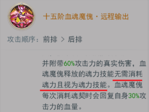 血魂魔傀的技能都是单体伤害,但结合魂契效果和天赋效果后,具备相当高的群体输出能力。
