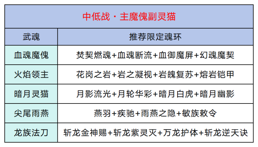 魔傀和灵猫都是典型的高伤害低坦度武魂,不管怎么搭配,伤害一般都是稳定的中等偏上,在这个不缺伤害的版本里,提高生存比极限输出更重要。